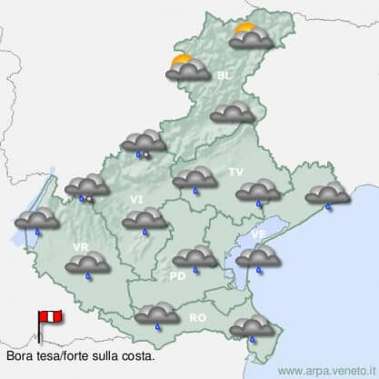 METEO VENETO – Nuvole e piogge tra oggi e domani
