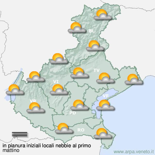 Temperature. Minime in contenuta diminuzione, salvo locali lievi controtendenze sulla pianura orientale; le massime subiranno contenute variazioni di carattere locale, tra cui prevarranno diminuzioni a sud-ovest ed aumenti a nord-est.