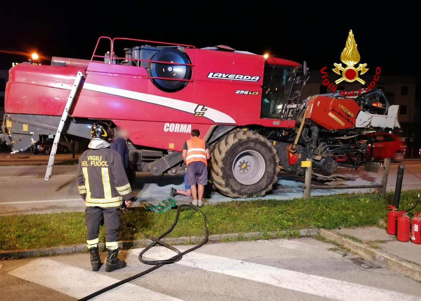 Lunedi sera, poco dopo le 21:30, i vigili del fuoco sono intervenuti lungo la strada provinciale a Grisignano del Zocco nei pressi dell’hotel Venice per un principio d’incendio di una mietitrebbia per il blocco del sistema frenante. Il conducente è riuscito con più estintori ha spegnere le fiamme, fino all’arrivo dei vigili del fuoco di Vicenza, che hanno raffreddato a lungo la macchina agricola. Rimosso il blocco dei freni la mietitrebbia è stata scortata fino in località Barbano e messa in sicurezza. Le operazioni di soccorso dei vigili del fuoco sono terminate dopo circa un’ora e mezza.