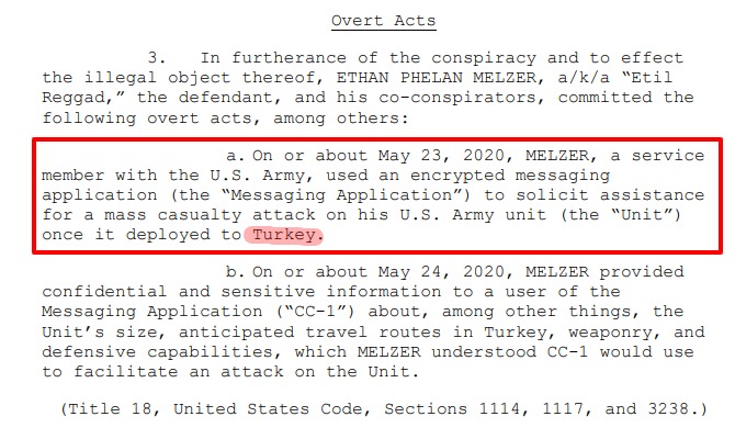 PER. INTORNO AL 23 MAGGIO 2020, MELZER, UN MEMBRO DEL SERVIZIO CON L’ESERCITO DEGLI STATI UNITI, HA UTILIZZATO UN’APPLICAZIONE DI MESSAGGISTICA CRITTOGRAFATA (“APPLICAZIONE DI MESSAGGISTICA”) PER RICHIEDERE ASSISTENZA PER UN ATTACCO DI VITTIME DI MASSA ALLA SUA UNITÀ DELL’ESERCITO AMERICANO (L ‘”UNITÀ”) UNA VOLTA SI È SCHIERATO IN TURCHIA.