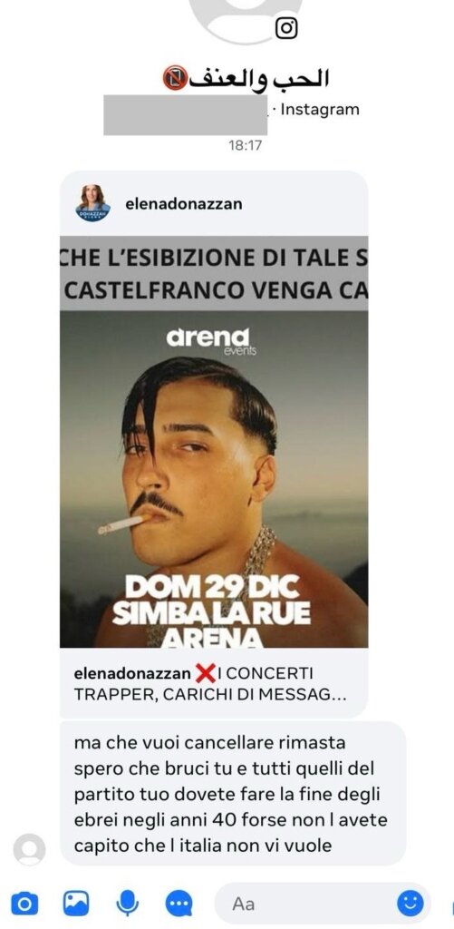 “Non mi faccio intimidire, ma trovo allarmante il rigurgito antisemita che emerge da questi attacchi”, ha dichiarato Donazzan. “Cosa c’entrano le persecuzioni contro gli ebrei con la mia richiesta di bloccare artisti che nei loro testi esprimono odio verso le donne e le forze dell’ordine?”, si interroga.