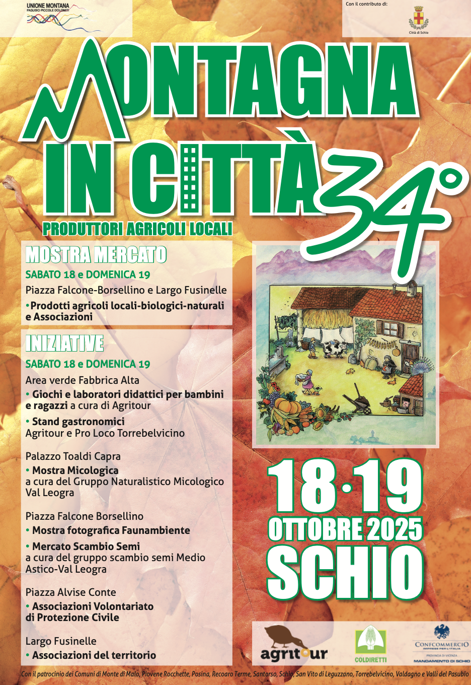 Montagna in città è infatti un appuntamento che, anno dopo anno, valorizza il legame tra il mondo agricolo e la vita cittadina, portando in centro a Schio i prodotti, il lavoro e le competenze delle nostre realtà di montagna. È un’occasione per far conoscere da vicino le eccellenze del territorio, ma anche per riscoprire il valore di chi, con dedizione e fatica, mantiene vive le nostre tradizioni e custodisce il paesaggio.