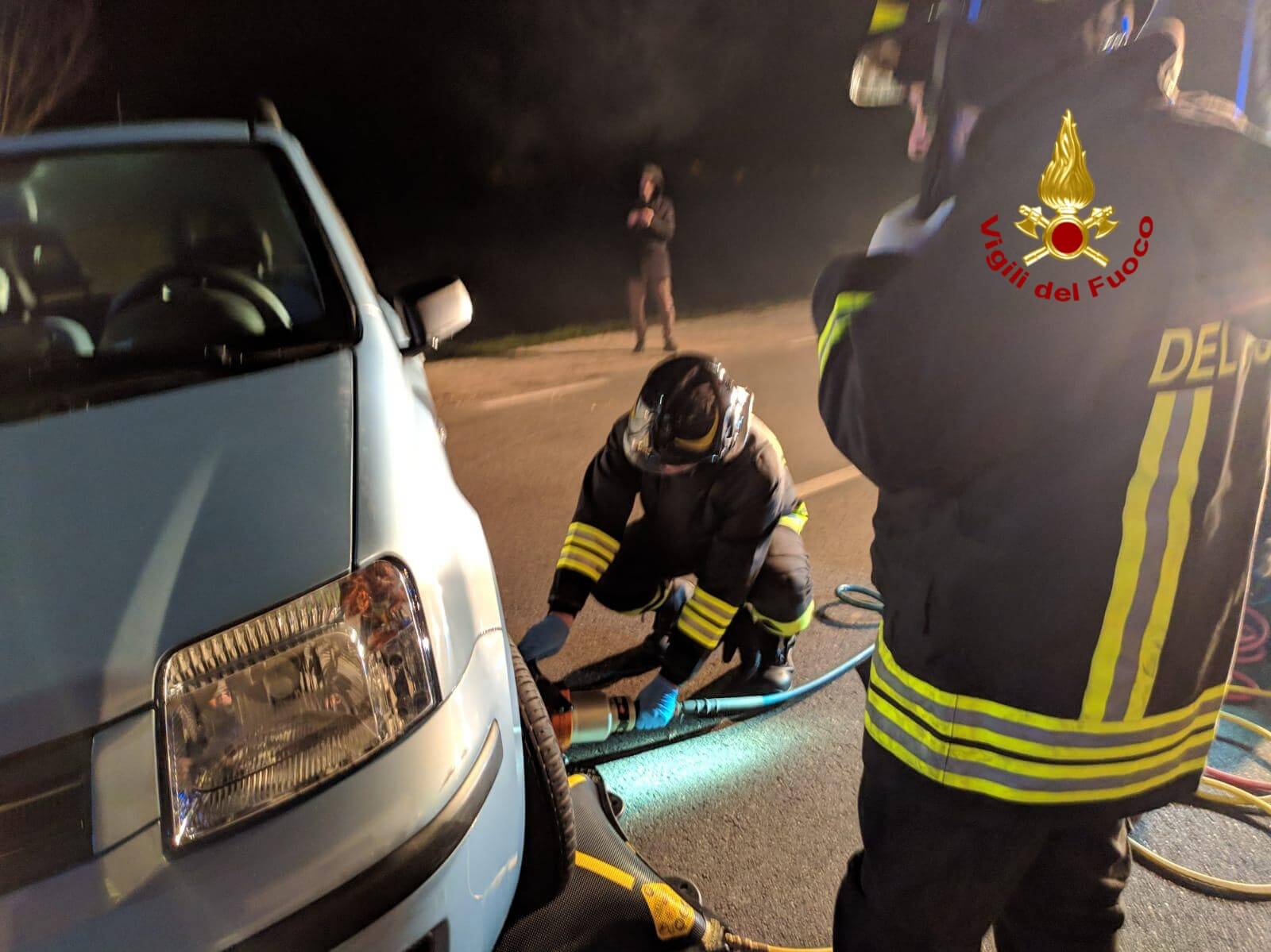 Alle 17:20, i vigili del fuoco sono intervenuti in Via Trento a montagnana per liberare un ciclista rimasto bloccato sotto un’auto dopo un investimento. I pompieri arrivati da Este, hanno con dei cuscini pneumatici e un divaricatore alzato l’auto, riuscendo a sfilare il 26 enne  di origini ghanese, rimasto bloccato sotto il telaio della vettura. Prima dell’arrivo dei soccorsi diversi cittadini avevano provato a liberare inutilmente il ferito.  Il giovane è stato stabilizzato dal personale del Suem 118 e trasferito in ospedale a Schiavonia. Illesa la donna 84 enne alla guida dell’auto. La polizia locale ha deviato il traffico ed eseguito i rilievi del sinistro. Le operazioni di soccorso dei vigili del fuoco sono terminate dopo circa un’ora.