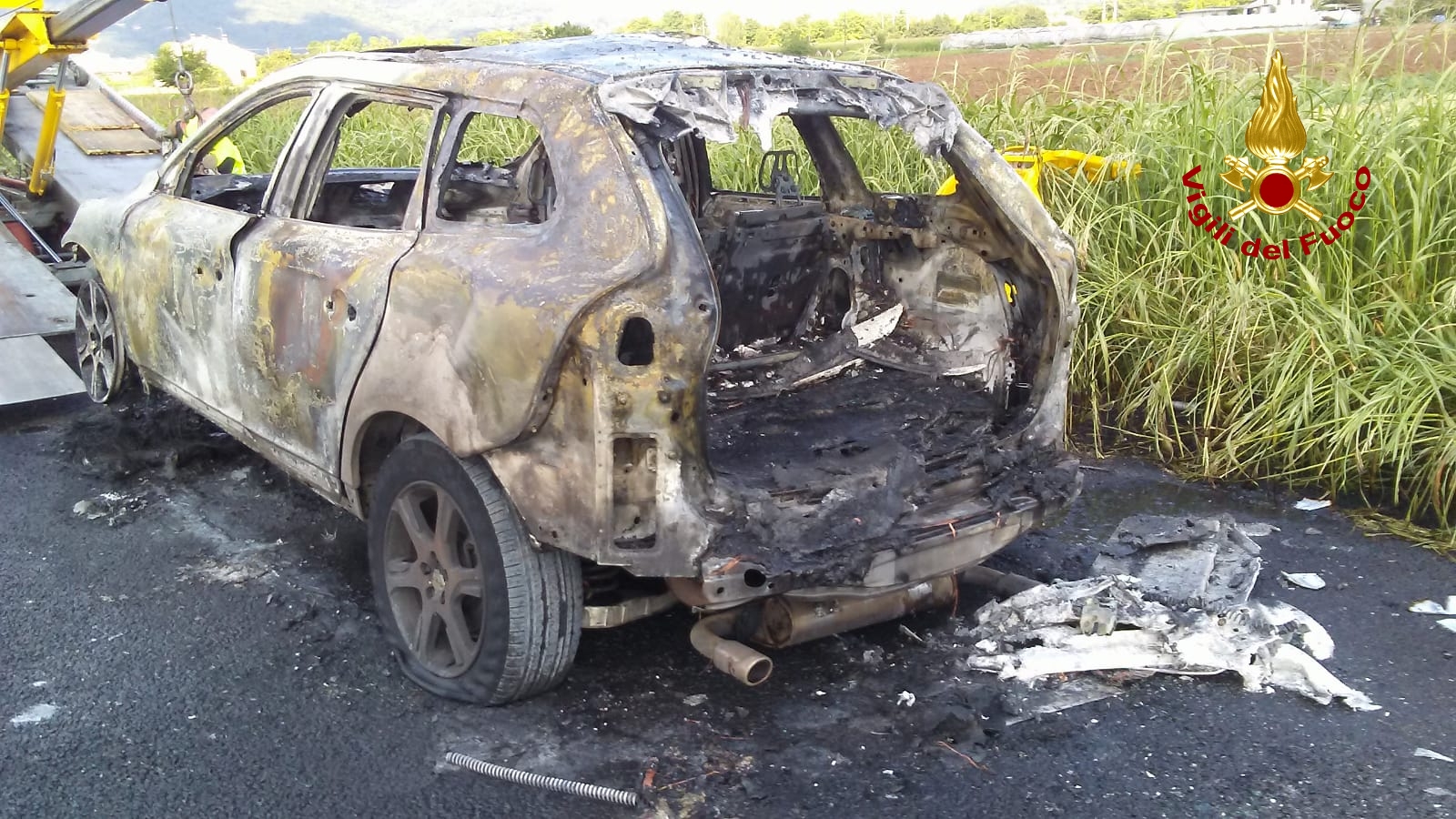 Alle 16.30, i vigili del fuoco sono intervenuti al km 317 lungo l’autostrada tra i caselli di Montebello e Montecchio Maggiore per un incendio autovettura: illeso l’autista. Il conducente stava percorrendo l’A4 quando ha notato del fumo venire fuori dalle bocchette dell’aria. Ha subito accostato e sceso dall’auto mentre la Volvo XC60 si è completamente incendiata. I pompieri arrivati da Lonigo hanno spento le fiamme, che hanno completamente bruciato la vettura. Sul posto la polizia stradale e gli ausiliari dell’autostrada. Le operazioni di completo spegnimento e raffreddamento dell’auto sono durate circa un’ora.