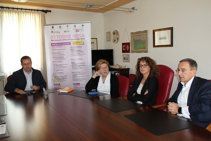 “Ricordati di te!”: è da sempre questo lo slogan che accompagna l’Ottobre Rosa dell’Andos, il mese per la prevenzione del cancro al seno e la diagnosi precoce dei tumori femminili organizzato dal Comitato Andos Ovest Vicentino Onlus e dall’Ulss 8 Berica. Oltre che seguire una sana alimentazione, ricordarsi di se stessi significa anche fare attività sportiva. Da qui è nata l’idea di organizzare, tra le varie iniziative dell’Ottobre Rosa, anche la “Passeggiata… in rosa”, evento promosso dall’ASD Nordic Walking di Montecchio Maggiore e dall’Andos, patrocinato dalla Città di Montecchio Maggiore e presentato questa mattina in Municipio dal sindaco Milena Cecchetto, dalla presidente del Comitato Andos Ovest Vicentino Piera Pozza, dal Coordinatore scientifico dell’Andos e Direttore della Breast Unit – Centro Donna di Montecchio Maggiore dott. Graziano Meneghini e dal presidente dell’ASD Nordic Walking Montecchio Maggiore Luca Rigodanzo.