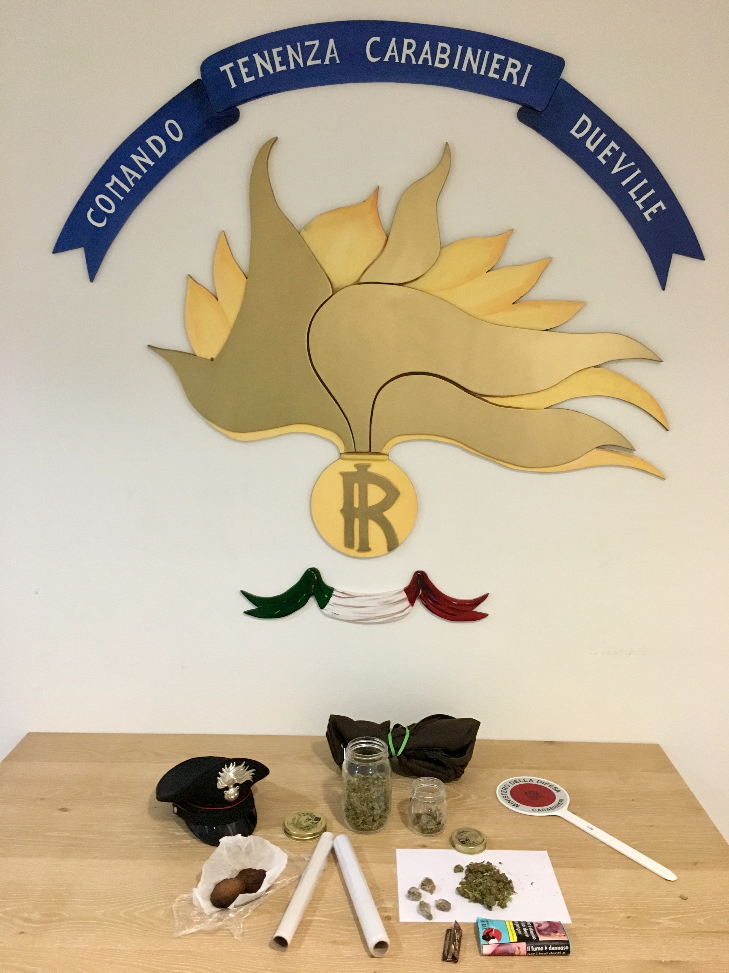 Nella serata del 23 settembre, a Monticello Conte Otto, all’interno del parco pubblico di Via degli Alpini di Cavazzale, una pattuglia della Tenenza Carabinieri di Dueville, nel corso di un servizio mirato al contrasto dello spaccio di sostanze stupefacenti, ha proceduto al controllo di un diciassettenne del luogo, il quale, alla vista dei militari, si dava alla fuga, venendo fermato poco distante. Nel corso della perquisizione sono stati rinvenuti all’interno dello zaino che il giovane aveva con lui, 63 grammi di marijuana, di cui una parte già suddivisa in involucri, oltre a materiale vario per il confezionamento. In uno scompartimento dello zaino i militari hanno trovato anche 2 biscotti pronti per essere consumati, la cui farina era stata però “amalgamata” con la marijuana durante la fase di preparazione. Il ragazzo è stato quindi deferito alla Procura dei Minori di Venezia per il reato di detenzione di sostanza stupefacente ai fini di spaccio.