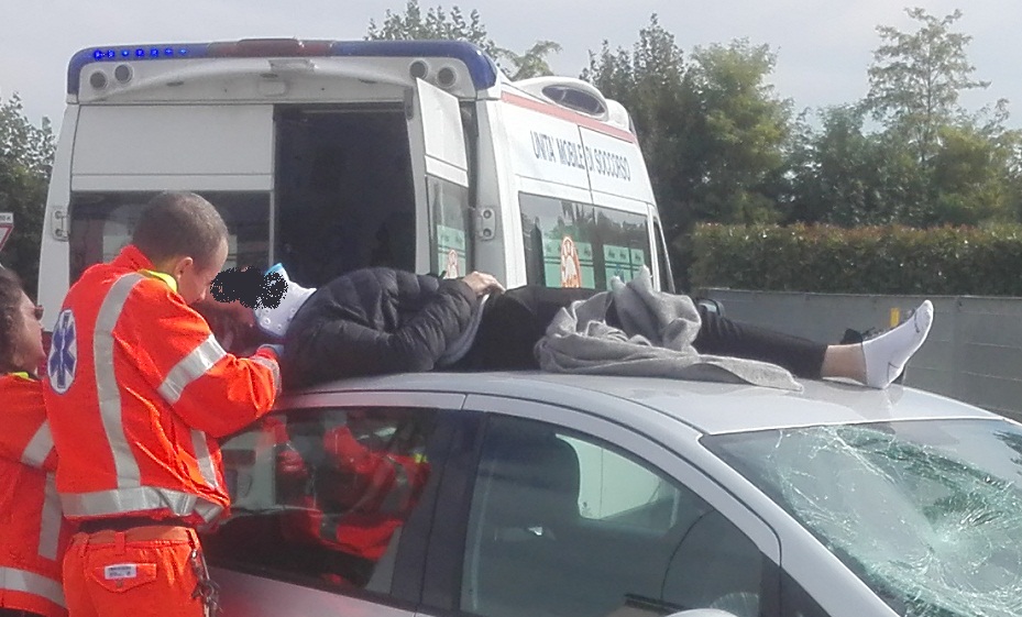 Fortunatamente non è in pericolo di vita ed è stata trasportata all’ospedale San Bortolo di Vicenza con un codice di media gravità, la 27enne di Vicenza (iniziali A.M.) che dopo lo scontro con un’automobile è finita sul tettuccio del mezzo.