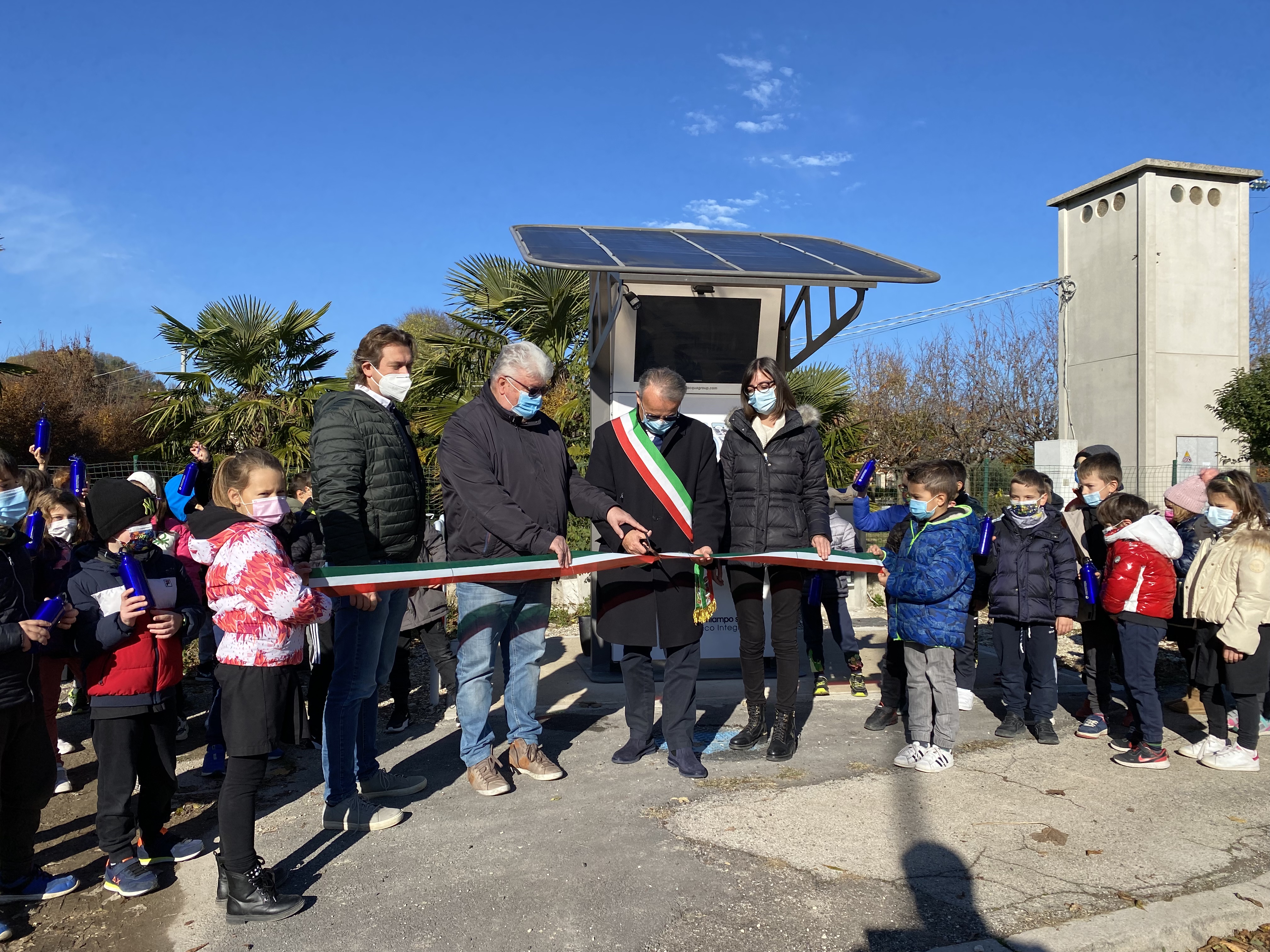 Inaugurata in questi giorni la seconda casa dell’acqua di Montorso Vicentino installata a cura di Acque del Chiampo in via Cristofari. Si tratta di un’installazione inserita nell’ambito di un più ampio progetto della società di Via Ferraretta che ha completamente rinnovato e potenziato questo servizio che copre tutti i dieci comuni azionisti di Acque del Chiampo. Alla piccola cerimonia che ha visto la partecipazione di alcune classi della locale scuola elementare a cui sono state regalate le borracce realizzate dall’Azienda, hanno partecipato il Sindaco Diego Zaffari accompagnato dall’assessore all’Istruzione Chiara Dal Ben, il vicepresidente di Acque del Chiampo, Guglielmo Dal Ceredo e il Direttore Generale, Andrea Chiorboli.