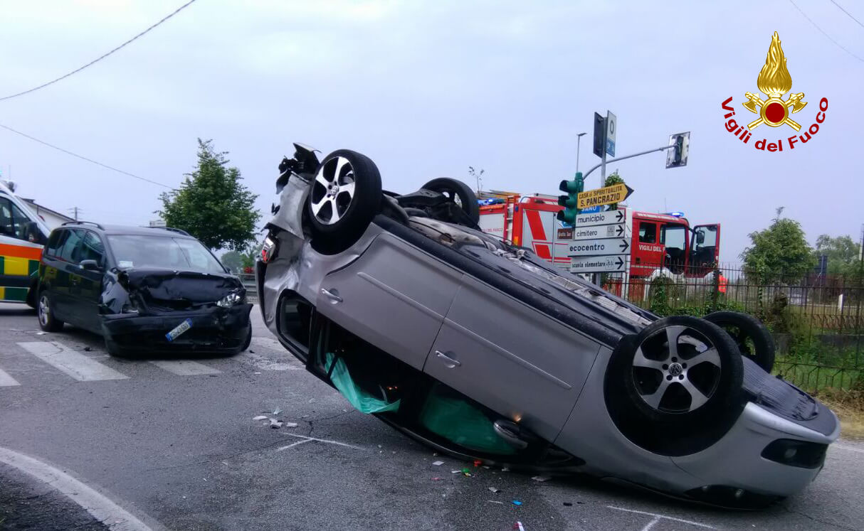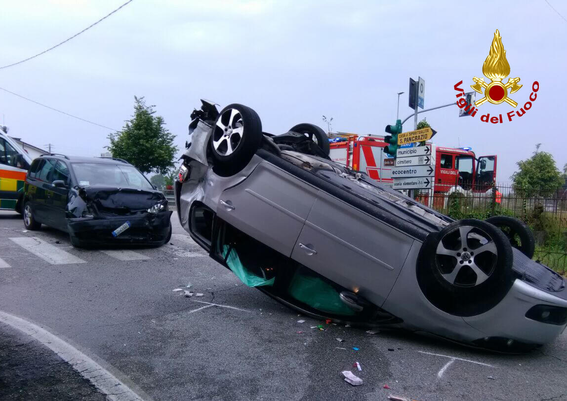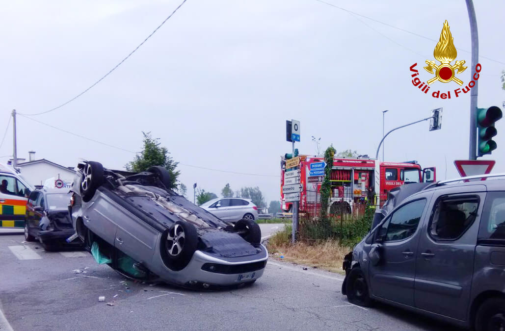 Alle ore 10.30, i vigili del fuoco sono intervenuti lungo la Riviera Berica al semaforo di Ponte di Mossano per un incidente che ha coinvolte tre auto: quattro i feriti portati in ospedale. Una Volkswagen Touran guidata da un cittadino di origine cinese che viaggiava con una passeggera ha centrato un’altra Touran la quale impegnava l’incrocio con 4 persone, che si è cappottata, andando a finire contro un’altra vettura ferma allo stop proveniente dal paese di Mossano. I pompieri hanno messo in sicurezza i mezzi e soccorso le tre donne e l’autista nella Touran rovesciata, i quattro feriti sono stati stabilizzati e portati in ospedale a Vicenza. Illeso l’autista e la passeggera dell’altra monovolume e il conducente della Peugeot. Sul posto i carabinieri per i rilievi e per la deviazione del traffico. Le operazioni di soccorso sono terminate dopo circa due ore.