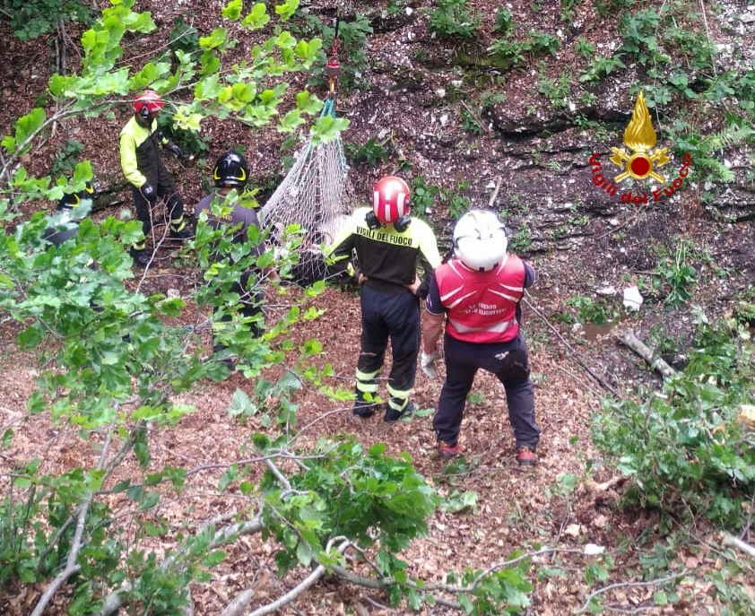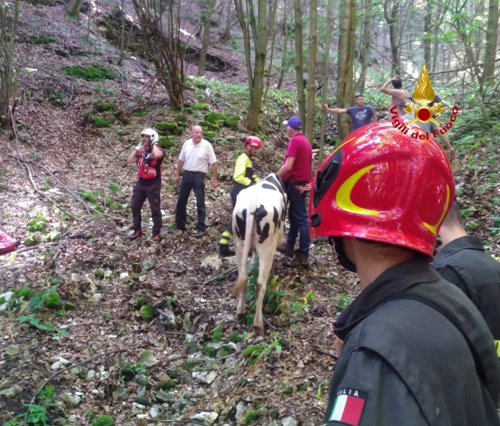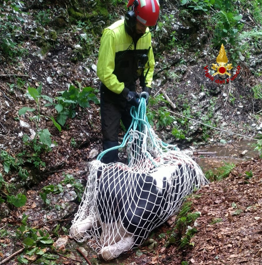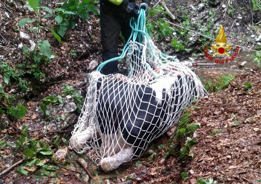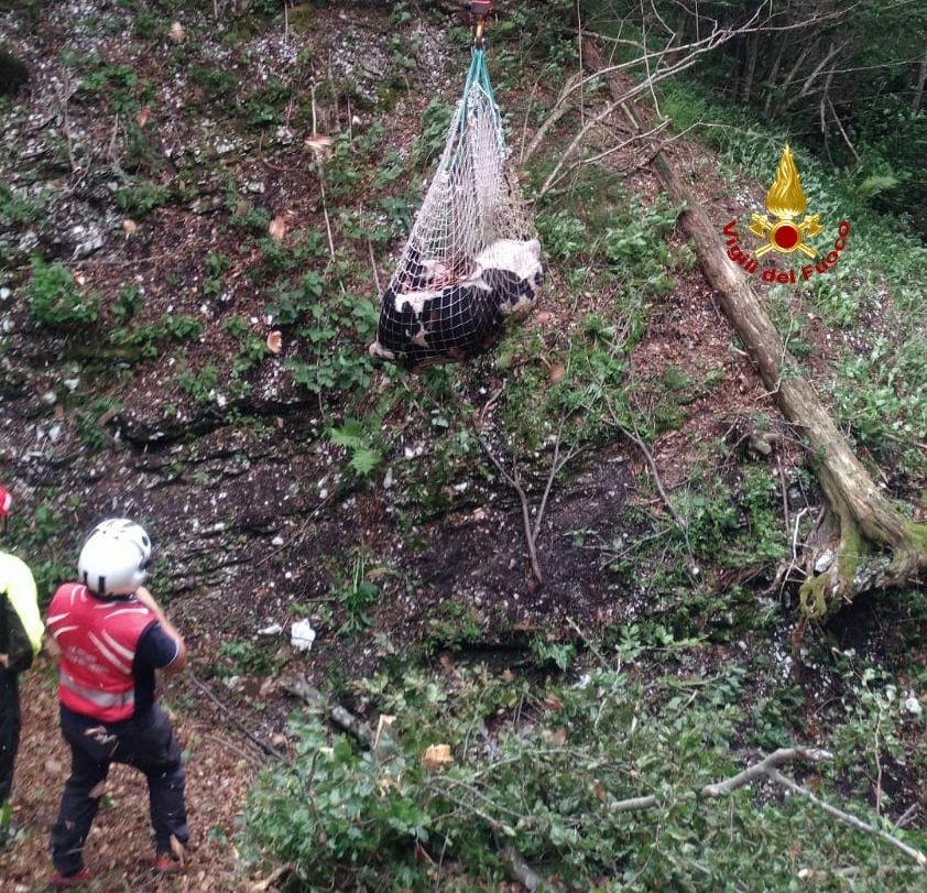 Mucche cadono in un dirupo: le operazioni di salvataggio dei pompieri (FOTO)