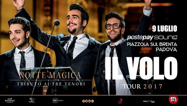 PIAZZOLA SUL BRENTA – Si arricchisce di nuove date il tour “Notte Magica” de Il Volo, confermando il grande successo del progetto dedicato ai tre tenori. Dopo le date già annunciate nelle principali città italiane ed europee, Piero Barone, Ignazio Boschetto e Gianluca Ginoble proseguiranno anche a luglio a incantare il proprio pubblico con altri appuntamenti lungo la Penisola. Il 9 luglio a Piazzola sul Brenta (PD) all’Anfiteatro Camerini per il Postepay Sound.