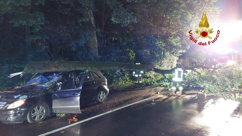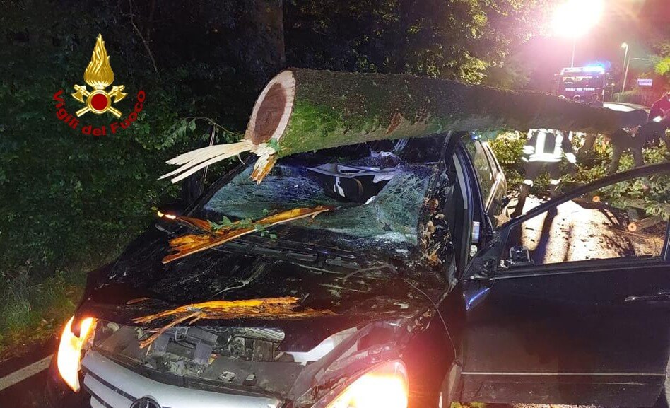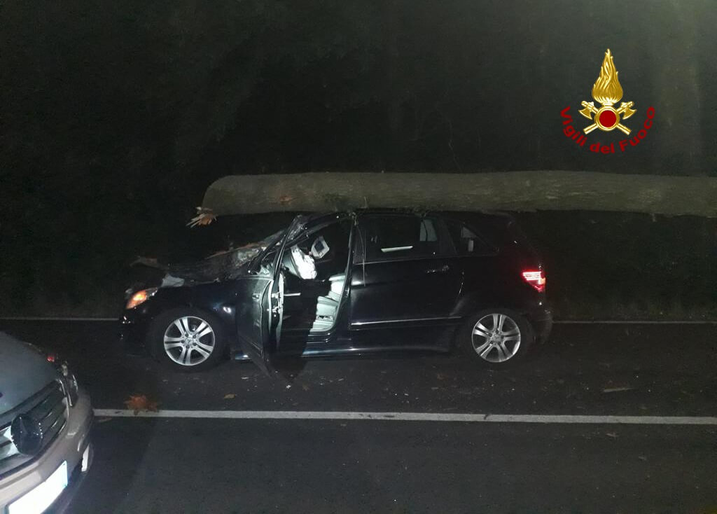 Albero tagliato di proposito crolla su automobile: ferita la conducente, indagini sui responsabili