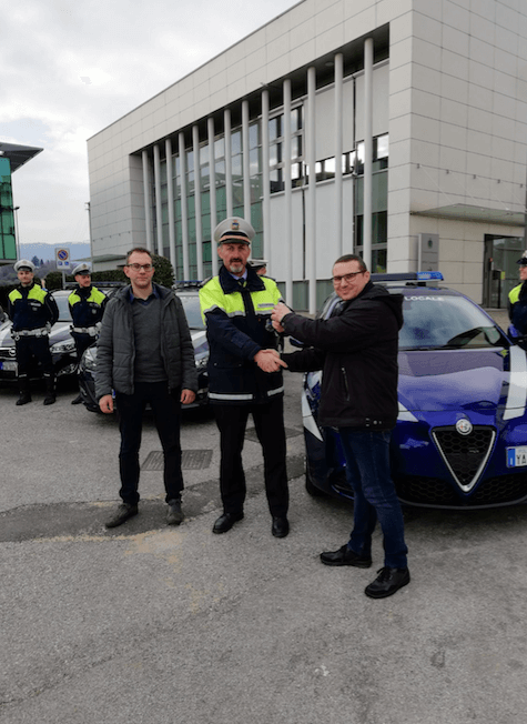 E’ stata consegnata ieri a Mussolente la nuova auto della Polizia locale “Pedemontana del Grappa”. Il nuovo mezzo, una Alfa Giulietta, è stata consegnata dall’assessore alla sicurezza di Mussolente, Gianni De Marchi, al Comandante della Polizia Locale Pedemontana del Grappa, Rocco Colò ed il vicecomandante, Massimo Ferrazzi. Erano presenti anche l’assessore alla sicurezza di Romano d’Ezzelino, Paolo Rossetto. L’auto, del costo di circa 20mila euro, finanziati interamente dal Comune di Mussolente, sostituisce la precedente, ormai vetusta, ed entra da oggi a par parte del parco mezzi della Polizia locale Pedemontana del Grappa, aggiungendosi ai cinque già in servizio.