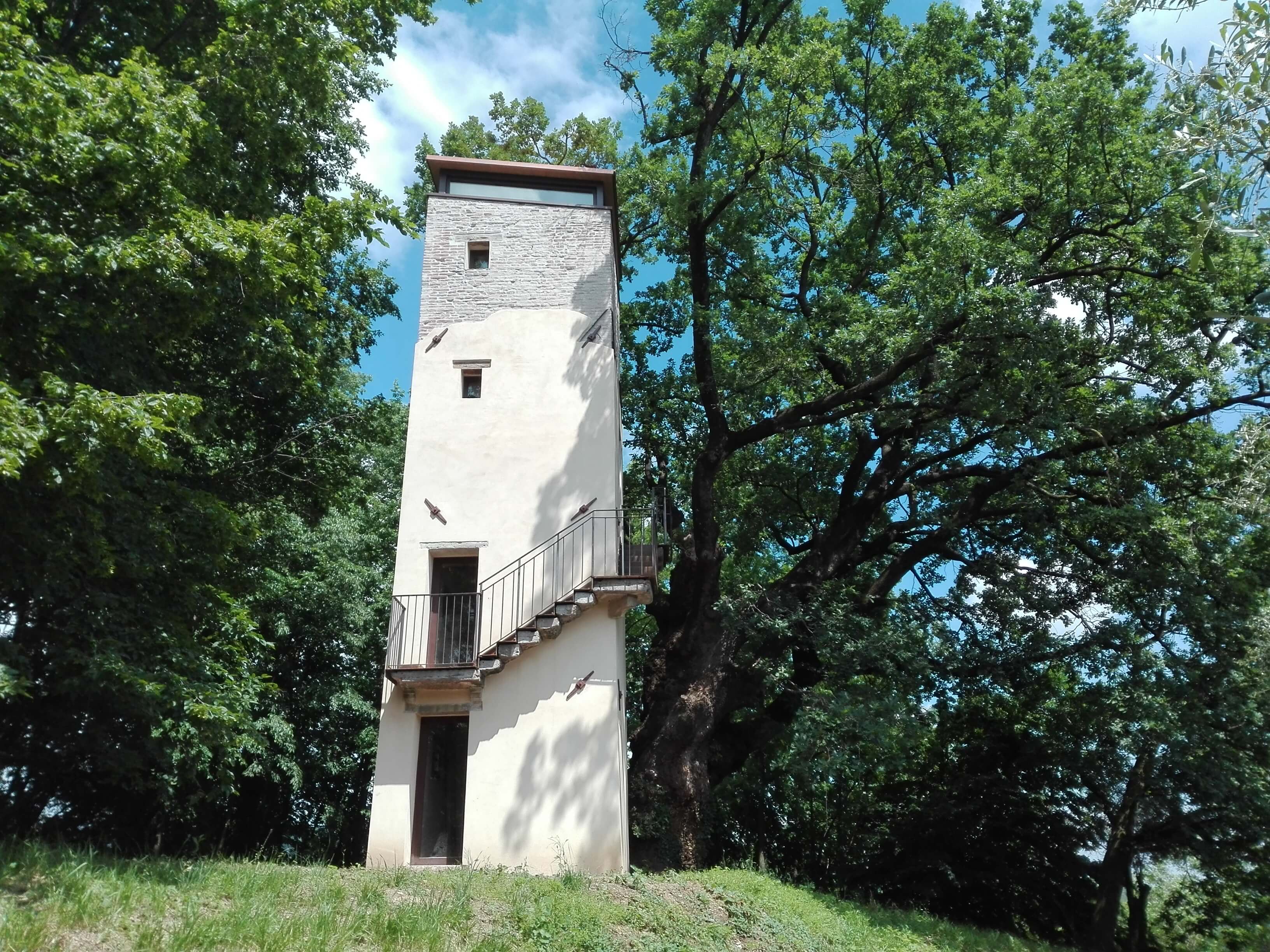 Approvato dalla Soprintendenza di Verona, l’intervento sulla torretta nella collina retrostante la Villa comprende sia il rifacimento dei solai interni e degli intonaci, la realizzazione di una scala interna e il ripristino della copertura in legno, che il recupero e la sistemazione delle piante presenti nell’area, la pavimentazione della strada comunale di accesso da via Degli Alpini e la creazione di una piazzola di sosta pedonale nell’accesso da via Roma