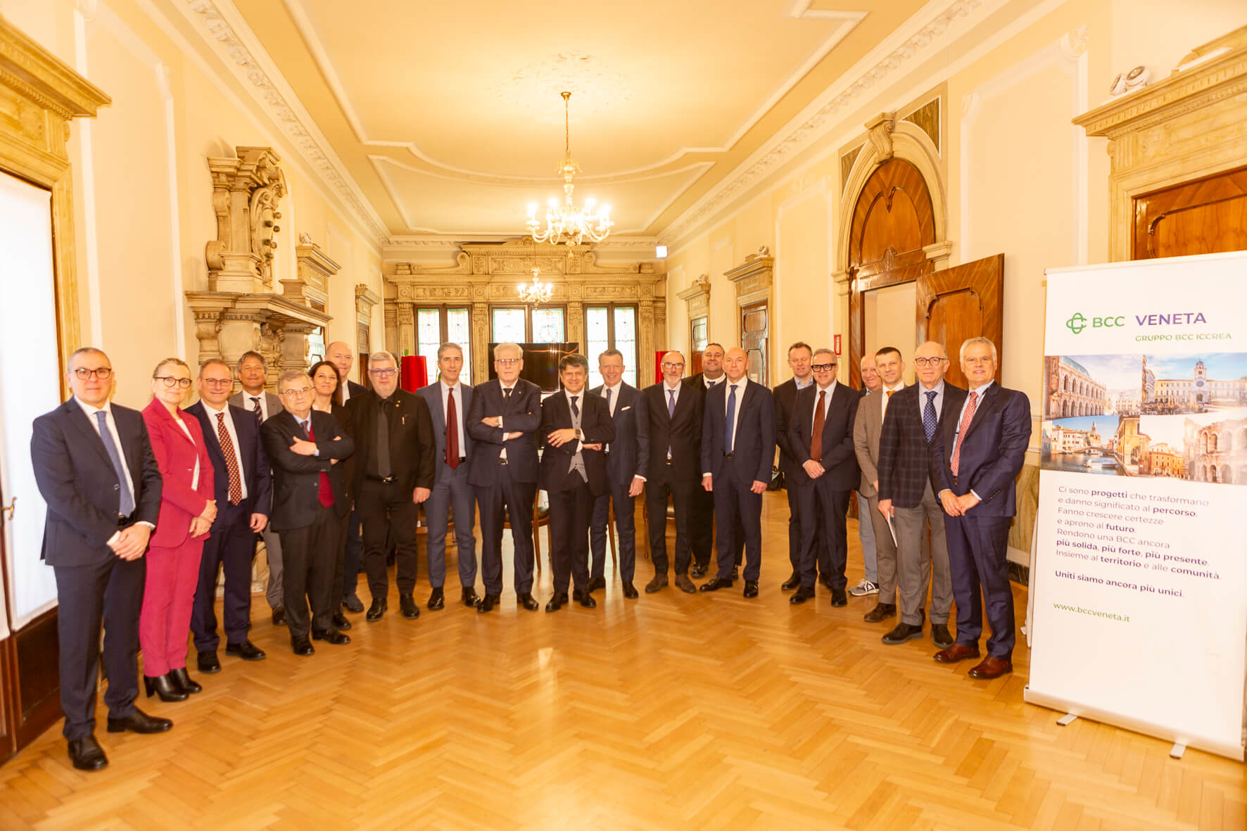 La fusione tra le due realtà regionali del Credito Cooperativo, BCC Verona e Vicenza e BCC Patavina, è siglata, per volontà delle due banche, in un luogo simbolo della cooperazione di credito in Italia. Vi nacque infatti quel Leone Wollemborg, più volte Deputato e Senatore del Regno, che fu il padre delle BCC, ideatore del movimento cooperativo e fondatore della prima Cassa rurale italiana a Loreggia nel 1883. Proprio a Palazzo Wollemborg, che oggi è sede universitaria, è stato convocato il primo Consiglio di Amministrazione della nuova Banca e sono stati firmati gli atti che hanno ufficializzato l’operazione di aggregazione tra i due Istituti.