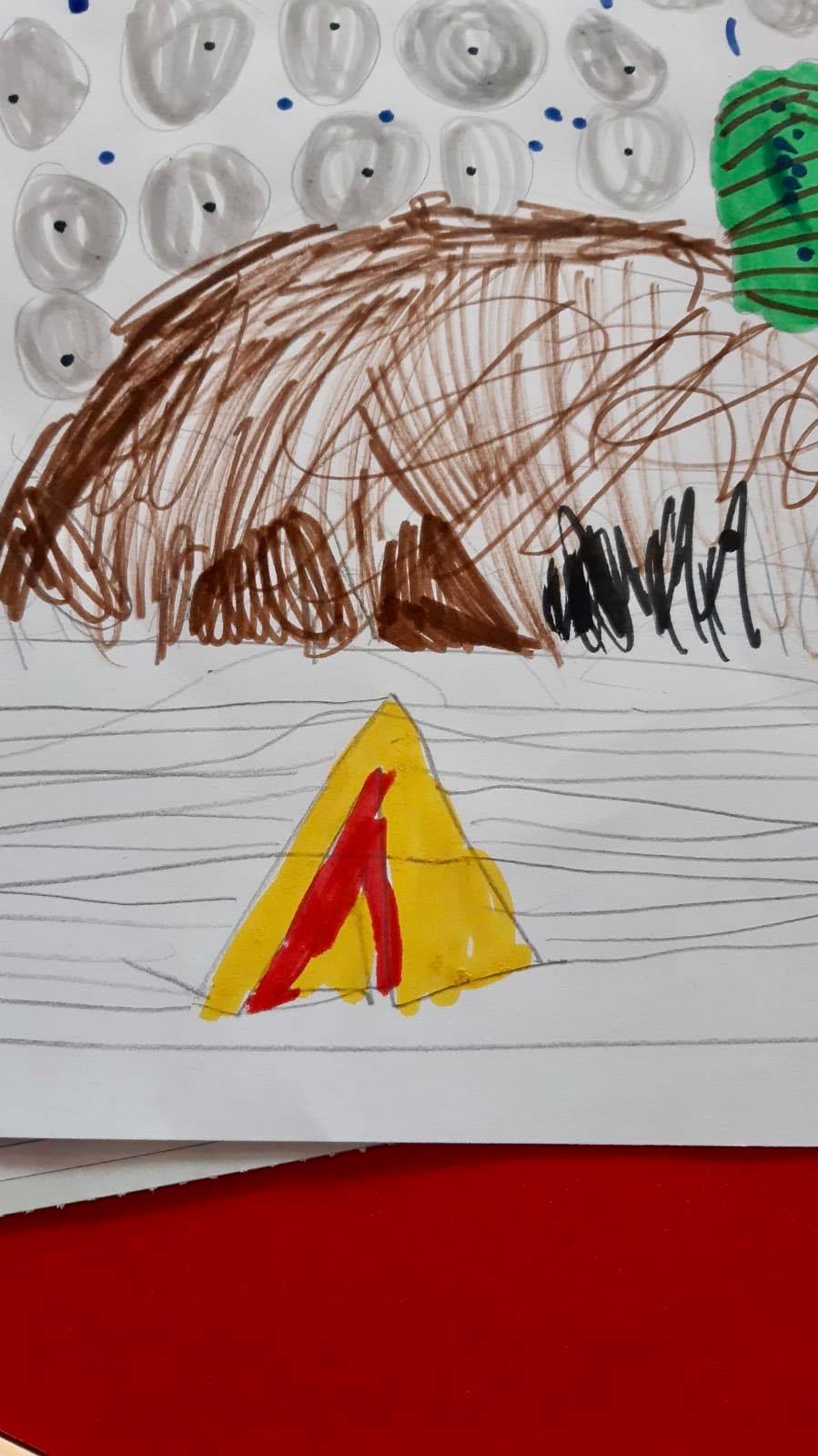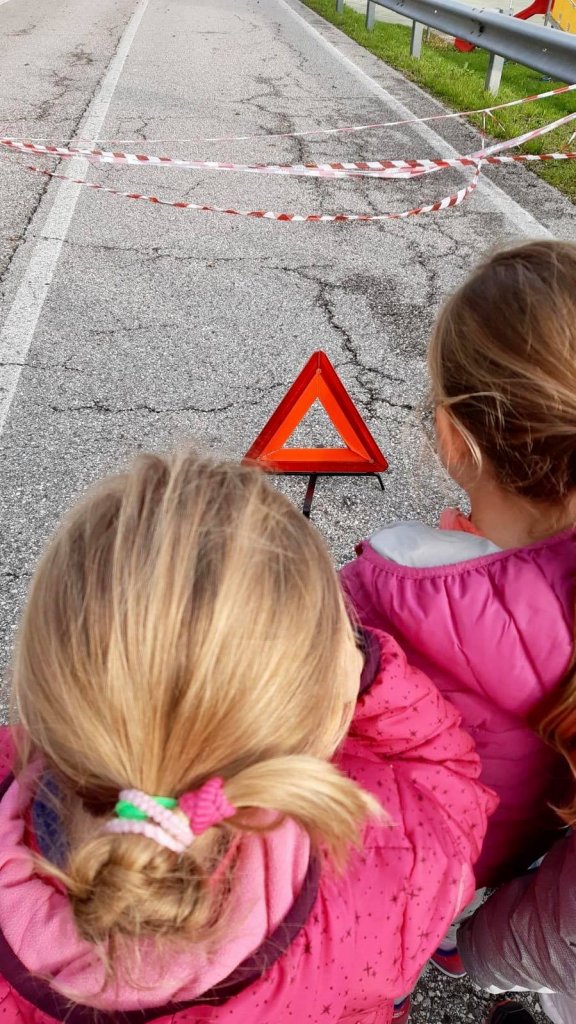 “… 26 Novembre 2019. Ieri la nostra scuola era chiusa perché domenica è caduta tanta, tantissima pioggia. Il terreno era un po’ bagnato, tanto bagnato, scosso…..e si è formata una frana! La frana è quando si staccano e cadono giù sassi, terra, alberi, foglie….La strada è rimasta bloccata e chiusa! Noi abbiamo saputo quello che era successo dal telefono della mamma e ci siamo preoccupati: la scuola era in pericolo? I sassi l’avevano schiacciata? Poi ci mancavano i nostri amici ed eravamo preoccupati per gli animali del bosco! Lo scoiattolo, il riccio, la talpa, gli uccelli.. saranno in pericolo? Ed ora che succederà? Forse metteranno una rete di ferro, forse arriverà il sindaco con i pompieri…..noi controlleremo tutti i giorni perché il bosco è per noi tutti molto, molto importante”.