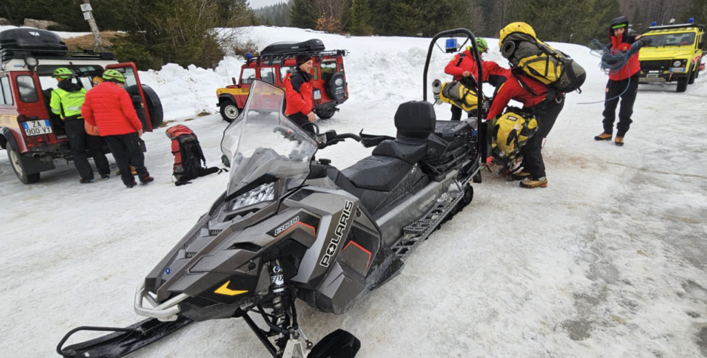 L’evento ha posto delle sfide tecniche e gestionali molto importanti: la cavità è situata in una zona remota dell’altopiano, difficile da raggiungere per le condizioni innevate del terreno. Si è reso necessario installare un campo base presso malga Fossetta, distante 30 minuti a piedi dalla grotta, che ha ospitato la direzione delle operazioni e le squadre di ricambio. Le difficoltà logistiche sono state affrontate con il supporto della Stazione alpina di Asiago, che grazie alle motoslitte ha curato il trasporto dei tecnici dal parcheggio di Campomulo fino a Malga Fossetta, lungo i 10 chilometri di traccia innevata, oltre all’abbondante materiale tecnico e logistico necessario.