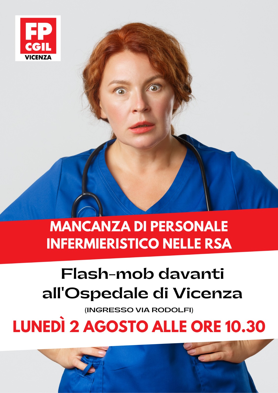 Lunedì 2 agosto, dalle 10.30 alle 12.30, davanti all’Ospedale di Vicenza (sull’ingresso esterno via Rodolfi), la Cgil organizza un flash mob.La finalità è quella di riportare alla ribalta il problema delle carenze di organico nelle Case di Riposo (RSA) che permane e si aggrava.