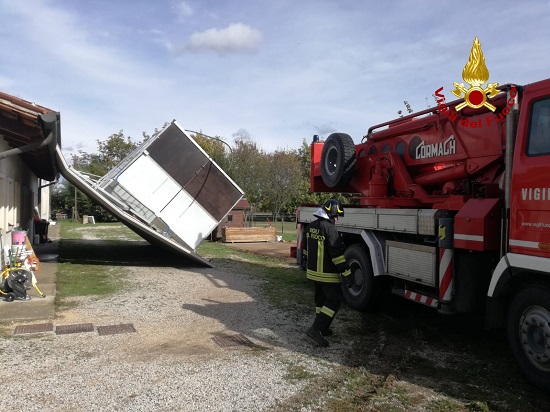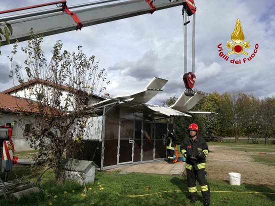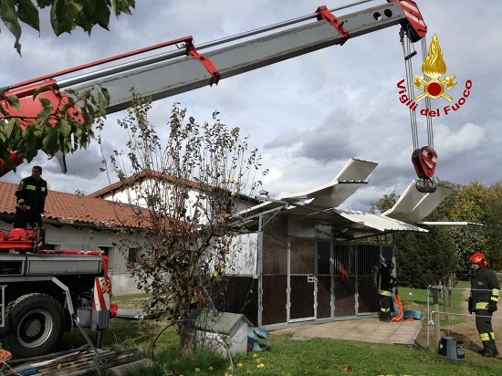 NOVENTA – Forte vento fa cadere box cavalli su un’abitazione