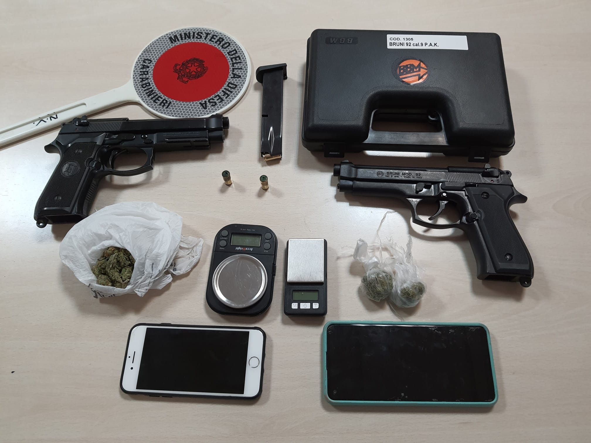 I carabinieri giunti sul posto sono stati subito in grado di risalire ad un paio di ragazzi, uno di 17 anni e uno di 16 anni. Si sono quindi recati nelle loro abitazioni e a casa del primo hanno rinvenuto 4,38 grammi di marijuana, un bilancino di precisione. A casa del 16enne sono stati trovati 5 grammi di marijuana e un bilancino di precisione. Quest’ultimo avrebbe avuto un atteggiamento molto aggressivo non solo nei confronti dei militari che sono stati costretti ad immobilizzarlo, ma anche dei genitori. Nelle case dei ragazzi sono state trovate anche le pistole scacciacani utilizzate contro il 21enne.