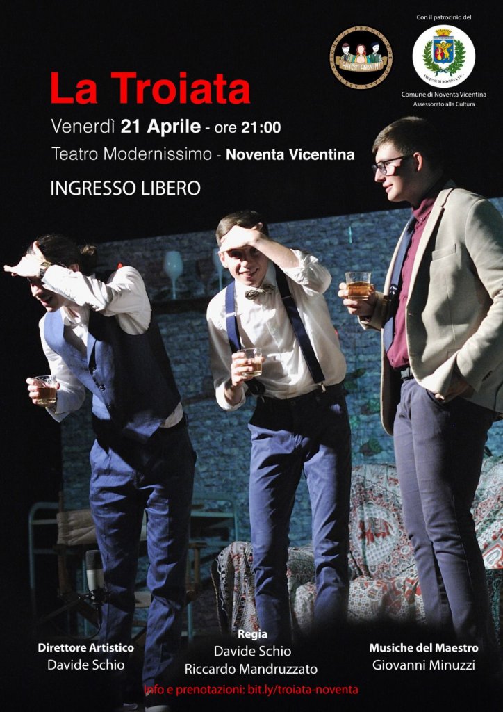 Domani, venerdì 21 aprile alle ore 21.00 presso il Teatro Modernissimo di Noventa Vicentina, l’Associazione Artisti Anonimi porterà in scena lo spettacolo “LA TROIATA”, regia di Davide Schio e Riccardo Mandruzzato.