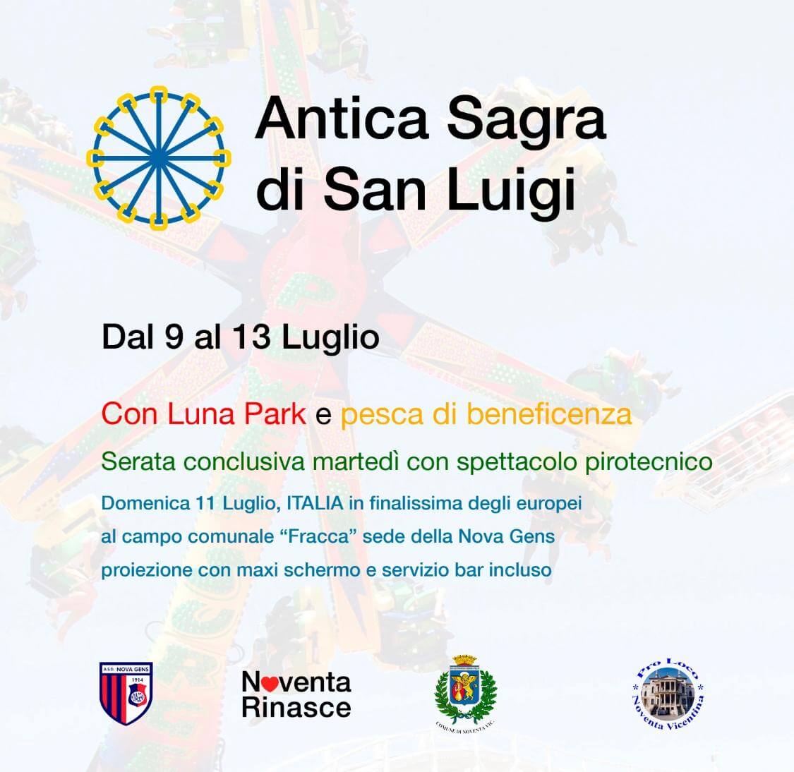 Riprendono (quasi) normalmente gli eventi a Noventa Vicentina. Da venerdì 9 luglio a martedì 13 luglio in piazza IV Novembre a Noventa torna la tradizionale Sagra di San Luigi. Per tutte le serate sarà aperta anche la Pesca di Beneficenza gestita dal gruppo parrocchiale!