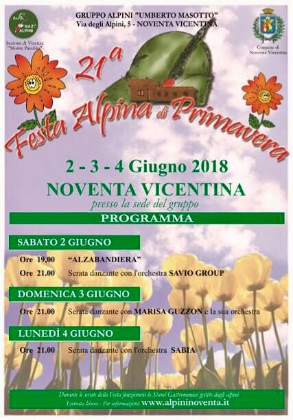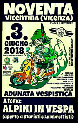 Alpini? Noventa? Un connubio sempre vincente all’insegna della partecipazione, della festa e della solidarietà. Questo fine settimana il 2, 3 , 4 giugno Festa Alpina nella sede del Gruppo U. Masotto e sempre in tema “Alpini” il raduno vespistico di domenica mattina 3 giugno in piazza e in sede Proloco.
