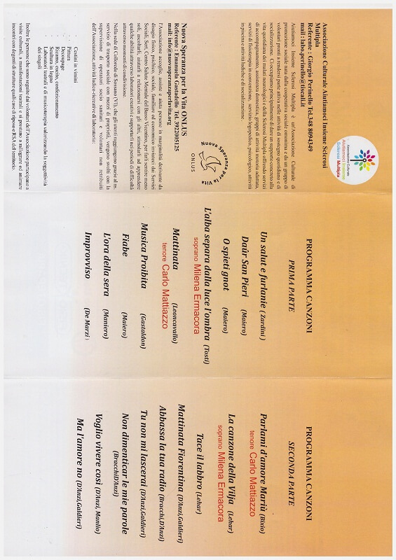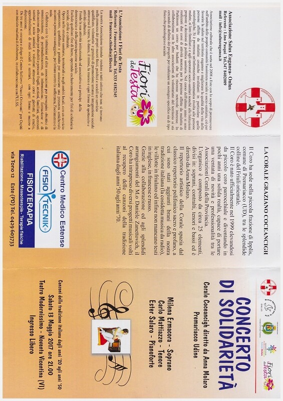 L’evento, tuttavia, non si limiterà alla presentazione dell’attività delle citate strutture, in quanto lo stesso sarà intervallato da una piacevolissima rievocazione di una delle epoche più fulgide nella storia della musica popolare italiana, quella compresa tra gli anni Venti e Cinquanta del secolo scorso. Ne sarà protagonista una formazione specializzata nel settore come la corale Graziano Coceancigh, sorta nel 1999 da un coro parrocchiale della località friulana di Premariacco (UD) e composta da un organico di circa venticinque elementi. La sua esibizione, comprensiva anche di alcuni brani dialettali, avverrà sotto la direzione del M° Anna Molaro, con l’accompagnamento del soprano Milena Ermacora, del tenore Carlo Mattiazzo e di Ester Salaro al pianoforte.