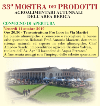 Domani sera alle 20.30 presso la tensostruttura della Pro Loco in via Martiri a Noventa Vicentina si terrà il convegno di apertura della 33a Mostra dei prodotti agroalimentari autunnali dell’Area Berica.