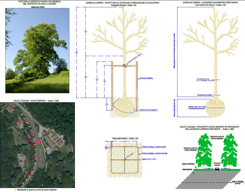 In viale X Giugno, di fronte al Museo del Risorgimento e della Resistenza, il filare di aceri negundi giunti a fine ciclo vitale sarà sostituito con 16 nuovi cerri (quercus cerri). Inoltre, nel tratto del viale tra la Basilica di Monte Berico e il Museo del Risorgimento e della Resistenza verranno messe a dimora sette lagerstroemie negli spazi compresi tra gli stalli dedicati alla sosta. In tal modo sarà completato il tratto della dorsale berici.