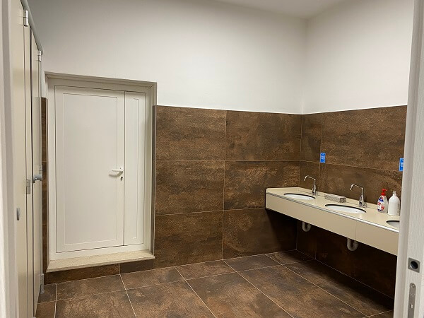 Complessivamente i nuovi servizi hanno una dotazione di tre wc per le donne e due per gli uomini oltre al bagno per le persone con disabilità riservato alla clientela della vicina Caffetteria Monte Berico.