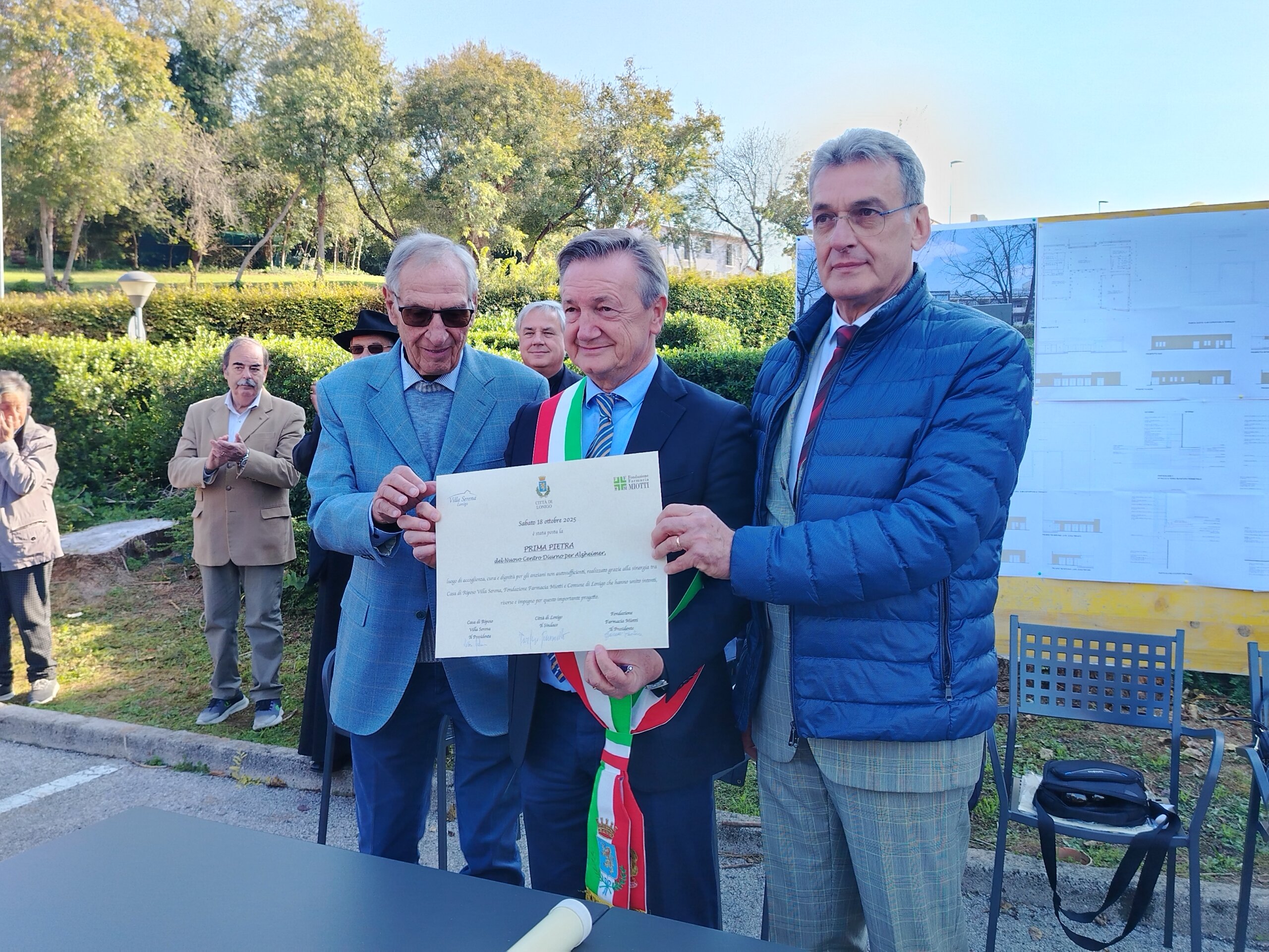 Pier Luigi Giacomello, sindaco della Città di Lonigo: “Sono molto felice e anche molto orgoglioso per questa opera che è il frutto di una iniziativa nata e sviluppata tutta all’interno della nostra città, una città che pensa alle persone anziane non autosufficienti e che cerca di aiutare le loro famiglie che non possono lasciare queste persone a casa da sole. Il centro diurno è una sorta di ‘asilo’ per questi anziani, che vengono accompagnati al mattino e riportati a casa la sera in un ambiente, come dice la targa che abbiamo interrato nelle fondamenta, che è un luogo di accoglienza, cura e dignità” e dove sono assistiti da personale competente e qualificato. Un progetto interamente realizzato con risorse della nostra città, nato grazie alla spinta del Comune e alla sinergia con la Casa di Riposo Villa Serena e la Fondazione Farmacia Miotti, che non riuscirò mai a ringraziare abbastanza. Un progetto che va di pari passo con la inaugurazione del nuovo asilo nido per bambini da 3 a 36 mesi che sarà fatta a inizio novembre nella frazione di Almisano. Lonigo, una città che pensa al futuro senza dimenticare chi ci ha portato fino ad oggi”.