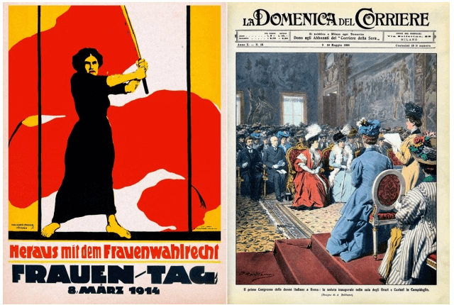 LUCI E OMBRE. L’ammissione delle donne a licei, ginnasi e università avvenne solo nel 1874 (dal 1877 al 1900 le laureate furono 224). Nel frattempo si diffuse la consapevolezza dello sfruttamento femminile, sottolineato con i primi scioperi (per prime scioperarono le mondine, nel 1883), la nascita dei sindacati (il primo fu quello delle lavoratrici tessili, nel 1889), l’accesso agli uffici pubblici, telegrafici e postali, e le prime attività commerciali “rosa” (1882). Ma il voto, politico e amministrativo, restava un miraggio e furono una sfilza le bocciature a petizioni e disegni di legge: nel 1863, nel 1875, nel 1877, nel 1888, nel 1898 (il regio decreto n. 164 del 4 maggio 1898 rifiuta il voto amministrativo a “analfabeti, interdetti, inabilitati, condannati all’ergastolo, mendicanti e donne”), nel 1906 e nel 1912, anno in cui il liberale Giovanni Giolitti introdusse il suffragio universale maschile, ma sbarrò la strada alle donne nella convinzione, disse alla Camera, che aggiungere sei milioni di donne all’elettorato fosse “un salto nel buio”. Con il fascismo, mentre le suffragette inglesi avevano finalmente conquistato il diritto di eleggere e di essere elette, i diritti femminili fecero un passo indietro: la concessione del voto amministrativo alle donne (1925) fu subito sospesa dato che non si tennero più elezioni. Perfino le insegnanti furono escluse dalle cattedre di Lettere e filosofia ai licei, e le tasse scolastiche per le studentesse raddoppiarono. Si stabilirono le mansioni lavorative adatte a donne: dattilografe, telefoniste, stenografe, conta banconote e biglietti, segretarie, annunciatrici, cassiere, commesse e sarte (con il regio decreto 838 del 29 luglio 1939).