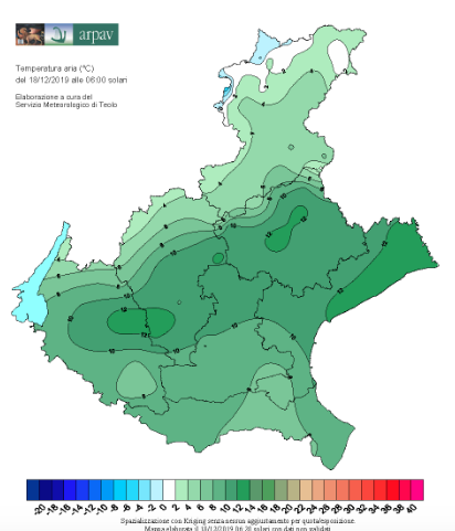 Stamattina il Centro Meteo ARPAV ha rilevato temperature particolarmente miti in Veneto. Le minime erano inferiori allo zero solo oltre i 2200 m di quota sulle Dolomiti, in pianura valori intorno ai 10°C, ben 10°C superiori alla norma, in molti casi sono stati superati i valori record di dicembre.