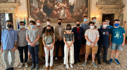 Venerdì pomeriggio nella sala degli Stucchi di Palazzo Trissino il sindaco Francesco Rucco e il consigliere comunale delegato alle politiche giovanili Jacopo Maltauro hannno incontrato gli studenti vicentini che si sono classificati alle finali nazionali delle XXXVII Olimpiadi di matematica conquistando ben nove medaglie (quattro ori, quattro argenti e un bronzo).