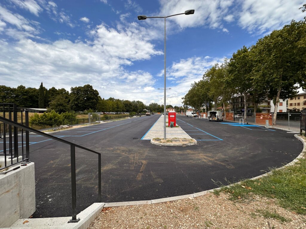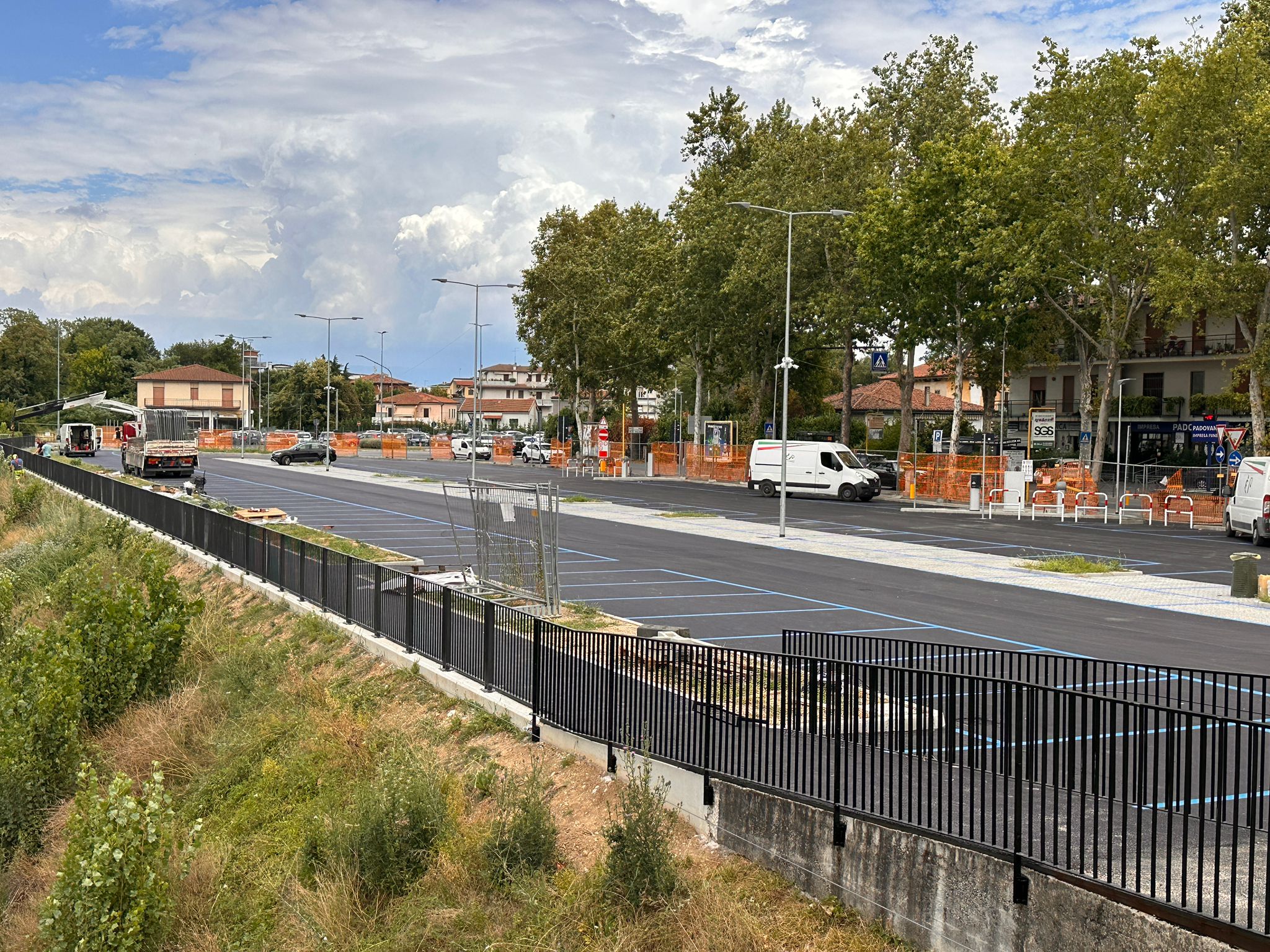L’area del parcheggio è stata completamente riqualificata, con una disposizione più ordinata degli stalli di sosta, la messa in sicurezza del percorso pedonale e l’installazione di un sistema di controllo degli accessi