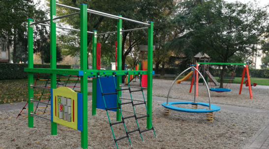 Otto parchi gioco e di un giardino scolastico rinnovati