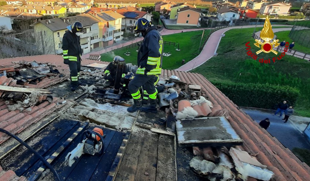Alle 15:00 circa, i vigili del fuoco sono intervenuti in Via 4 Novembre a Zermeghedo per l’incendio di un tetto ventilato di un’abitazione a due piani. I pompieri arrivati da Arzignano e Vicenza con due autopompe e 10 operatori, sono riusciti in breve tempo a scoperchiare la zona delle fiamme e sezionare il tetto con una motosega, evitando il coinvolgimento di tutta la copertura. Le cause dell’incendio probabilmente innescate dalla canna fumaria sono al vaglio dei tecnici dei vigili del fuoco. Le operazioni di soccorso sono terminate alle 17 circa con la copertura provvisoria del tetto.