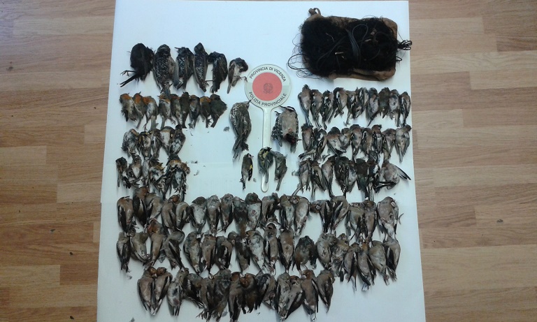 Ancora in azione la Polizia Provinciale di Vicenza contro l’uccellagione e i cacciatori scorretti. Un maxi sequestro di uccelli proibiti è stato effettuato mercoledì, dopo un appostamento, due agenti del distaccamento di Montecchio Maggiore hanno sorpreso in flagranza di reato L.A., cacciatore di 77 anni di Chiampo, mentre stava recuperando da una rete per l’uccellagione, piazzata in un’area boscosa sopra la sua abitazione, ben 108 esemplari di volatili appartenenti per lo più a specie protette: una cinquantina di frosoni (50), fringuelli, peppole, pettirossi e persino un picchio rosso maggiore.