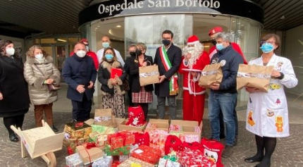 Questa mattina per i bambini ricoverati in pediatria all’ospedale San Bortolo di Vicenza è arrivato Babbo Natale. Grazie all’iniziativa promossa da Comune di Vicenza, Pro Loco Postumia, Vicenza for Children, associazione Noi per Voi di Masone (Genova) e Cisom, Corpo italiano di soccorso dell’Ordine di Malta, in reparto sono giunti pacchi dono e scatole regalo piene di giochi per far trascorrere anche ai bambini ospedalizzati qualche ora di festa in serenità.