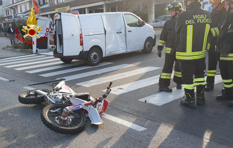 Perde il controllo della moto finendo lateralmente contro un furgone, sbalzato in alto finisce sul tetto del veicolo tamponato: soccorso dai vigili del fuoco, che l’hanno recuperato. È successo questa mattina alle 8:15 in Via Euganea in località Bresseo a Teolo. I vigili del fuoco hanno messo in sicurezza il centauro 19enne, che è poi stato recuperato e preso in cura dal personale sanitario del Suem per essere trasferito in ospedale. Sul posto le forze dell’ordine per i rilievi del sinistro.