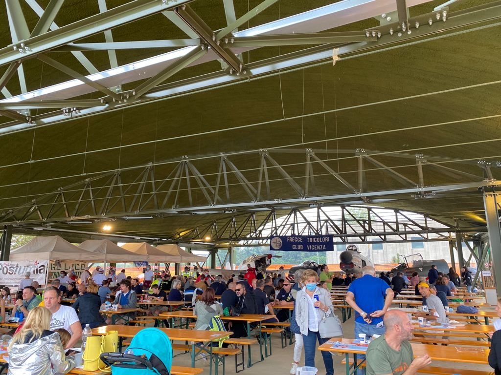 Pari a 450 le persone che hanno scelto di pranzare sotto uno degli hangar allestito con le cucina da campo delle Pro Loco Postumia e Bolzano Vicentino, apprezzando i prodotti dop e i piatti tipici del territorio.