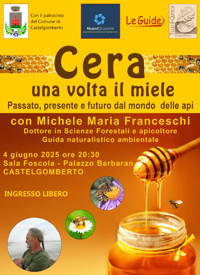 “Cera una volta il miele”: non è un refuso, ma il titolo evocativo di un mondo particolare ed estremamente affascinante, come quello delle api, che saranno le protagoniste della serata curata da Nuovi Orizzonti Aps in programma mercoledì 4 giugno alle 20.30 in Sala Foscola di Palazzo Barbaran a Castelgomberto. Ad illustrare questo interessante argomento sarà Michele Maria Franceschi, laureato in Scienze Forestali specializzato in Economia dei Paesi in via di sviluppo, Guida naturalistico ambientale e apicoltore per passione. Nativo di contrada Lucchetta, ha vissuto alcuni anni in Zambia e in Mozambico dove all’inizio si occupava di agricoltura sostenibile ma poi ha iniziato ad interessarsi di microcredito e, infine, anche di turismo e di progetti di sviluppo. Al rientro dall’Africa, Franceschi si dedica alla conoscenza e all’allevamento delle api. Un destino segnato dal fatto che all’età di 11 anni gli era stato regalato un alveare. Fino al 2010 è stato un hobby, poi evolutosi in lavoro vero e proprio con l’iscrizione all’Associazione Regionale Apicoltori del Veneto e l’apertura di un’azienda agricola con fattoria didattica, “Tiglio e Quercia”, che si trova sulle alte colline che discendono dalle Piccole Dolomiti fino ai confini con Valdagno. “In questa area – spiega Franceschi – sono alloggiati una settantina di alveari, mentre un’altra quindicina li ho collocati nella zona di Brogliano. Il miele che ricaviamo è millefiori primavera, di acacia, millefiori estivo, di castagno, di tiglio, di castagno e tiglio.” La serata del 4 giugno gode del contributo del Comune di Castelgomberto ed è ad ingresso libero.