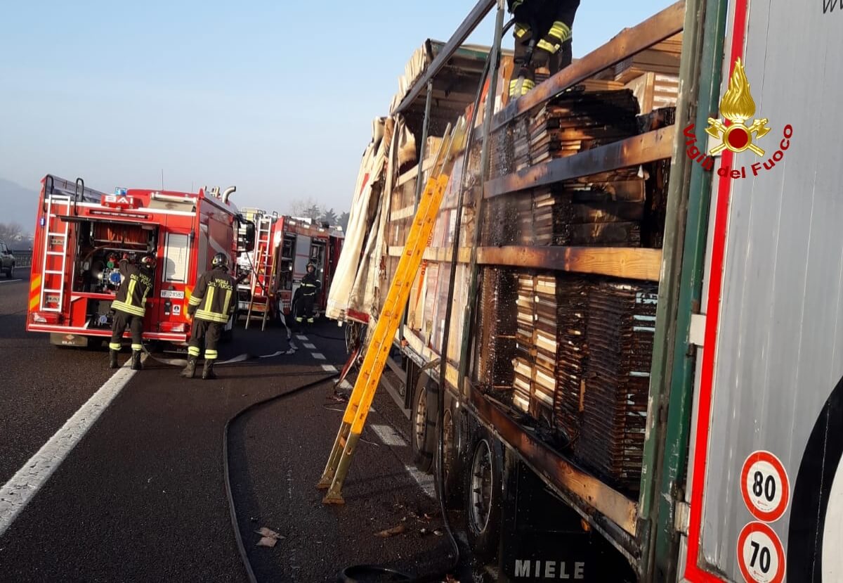 Alle 7.30, i vigili del fuoco sono intervenuti in autostrada A4, tra i caselli di Vicenza Ovest e Montecchio in direzione Milano per l’incendio del carico di un autoarticolato. L’autista del mezzo si è accorto dagli specchietti del fumo provenire dal carico, ha accostato lungo una piazzola di sosta poco dopo l’aerea di servizio di Villa Morosini riuscendo a staccare la motrice. I pompieri accorsi con un’autopompa e un’autobotte, sono riusciti a spegnere le fiamme, che hanno interessato la parte posteriore del semirimorchio carico di pannelli di legno. Le cause che hanno innescato le fiamme sono al vaglio dei vigili del fuoco. Sul posto la polstrada e il personale ausiliario dell’autostrada. Le operazioni di soccorso sono terminate dopo circa due ore.