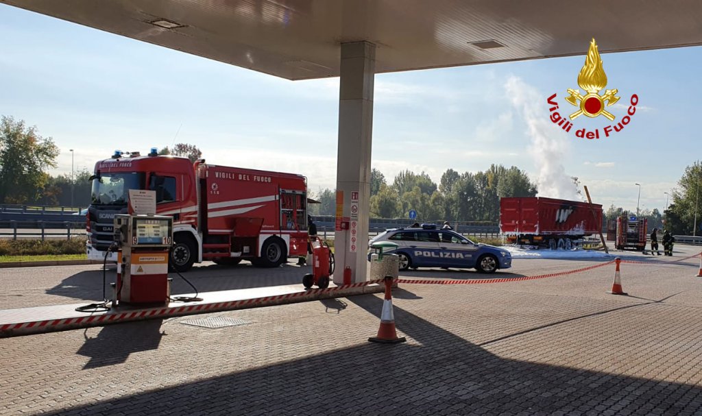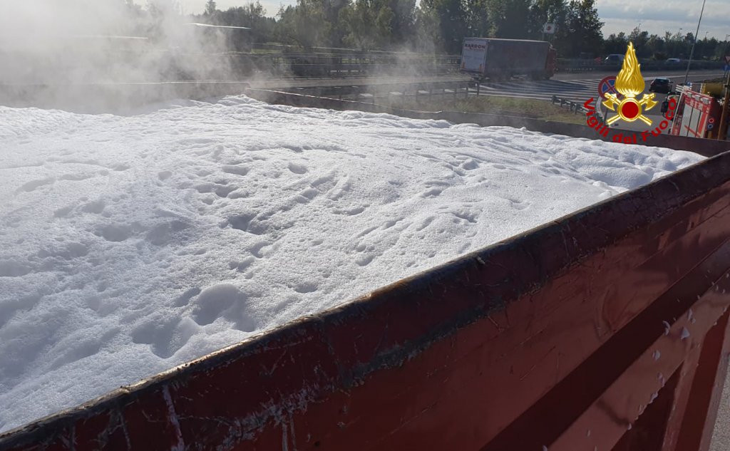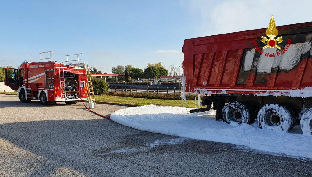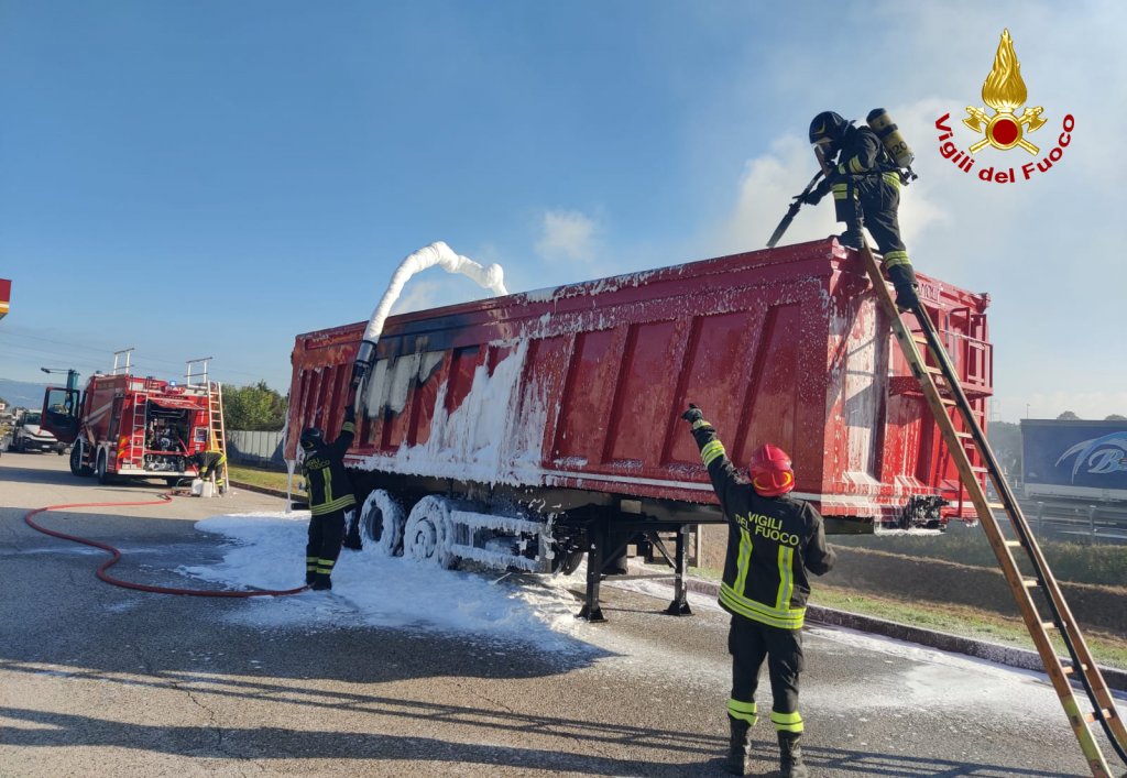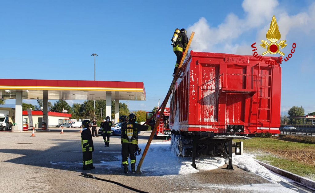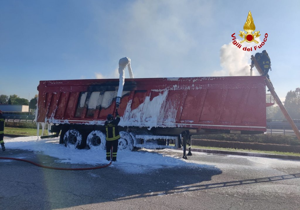 Alle 9:30, i vigili del fuoco sono intervenuti presso l’area di servizio Postumia Sud nel territorio di Bolzano Vicentino, lungo l’A31 in direzione Vicenza per l’incendio del carico di un semirimorchio di un camion, carico di materiale triturato di elettrodomestici dismessi. L’autista dopo la segnalazione di alcuni automobilisti ha notato il fumo provenire dal cassone, trovandosi in prossimità dell’area di servizio è entrato, si è fermato in una zona sicura, riuscendo anche a staccare la motrice. I pompieri arrivati da Vicenza con un’autopompa, un’autobotte e 7 operatori, hanno utilizzato la schiuma per soffocare e spegnere l’incendio covante del carico. Successivamente è stato fatto arrivare sul posto un altro camion e il materiale è stato trasbordato sull’altro mezzo. Le cause delle fiamme sono al vaglio delle squadre intervenute. Sul posto il personale ausiliario di autostrada e la polstrada. Le operazioni di soccorso dei vigili del fuoco sono terminate a mezzogiorno circa.