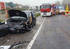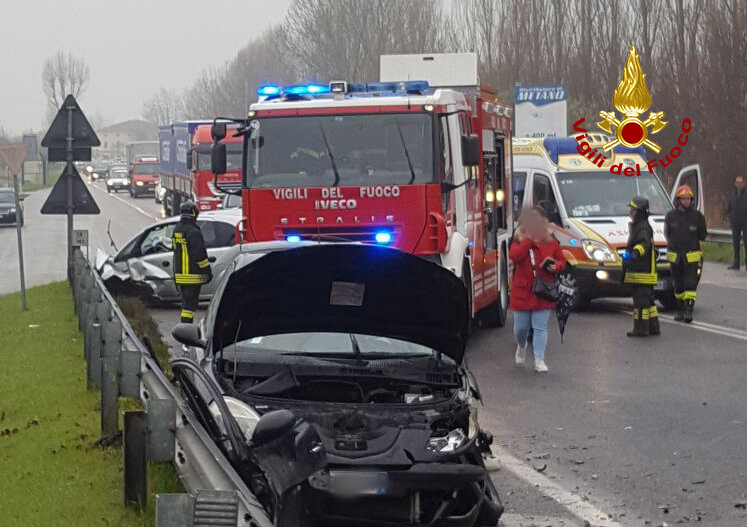 (in aggiornamento) Alle ore 7.45, i vigili del fuoco sono intervenuti lungo la SR11 in via Nazionale a Grumolo delle Abbadesse per lo scontro tra tre autovetture: cinque i feriti. I pompieri accorsi da Vicenza hanno messo in sicurezza i mezzi e liberato tre giovani donne, rimaste incastrate all’interno di Lancia Y, che sono state presi in cura dal personale del suem 118 per essere portate in ospedale. Portati in pronto soccorso anche i due occupanti di una Opel Meriva che erano stati soccorsi e portati via prima dell’arrivo della squadra. Illeso il conducente della terza auto una Volkswagen Golf. Sul posto i carabinieri per i rilievi del sinistro. Le operazioni di soccorso dei vigili del fuoco sono terminate dopo circa un’ora e mezza.