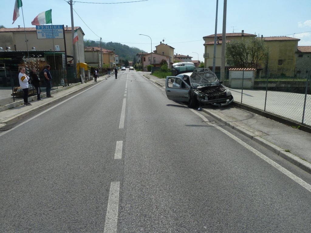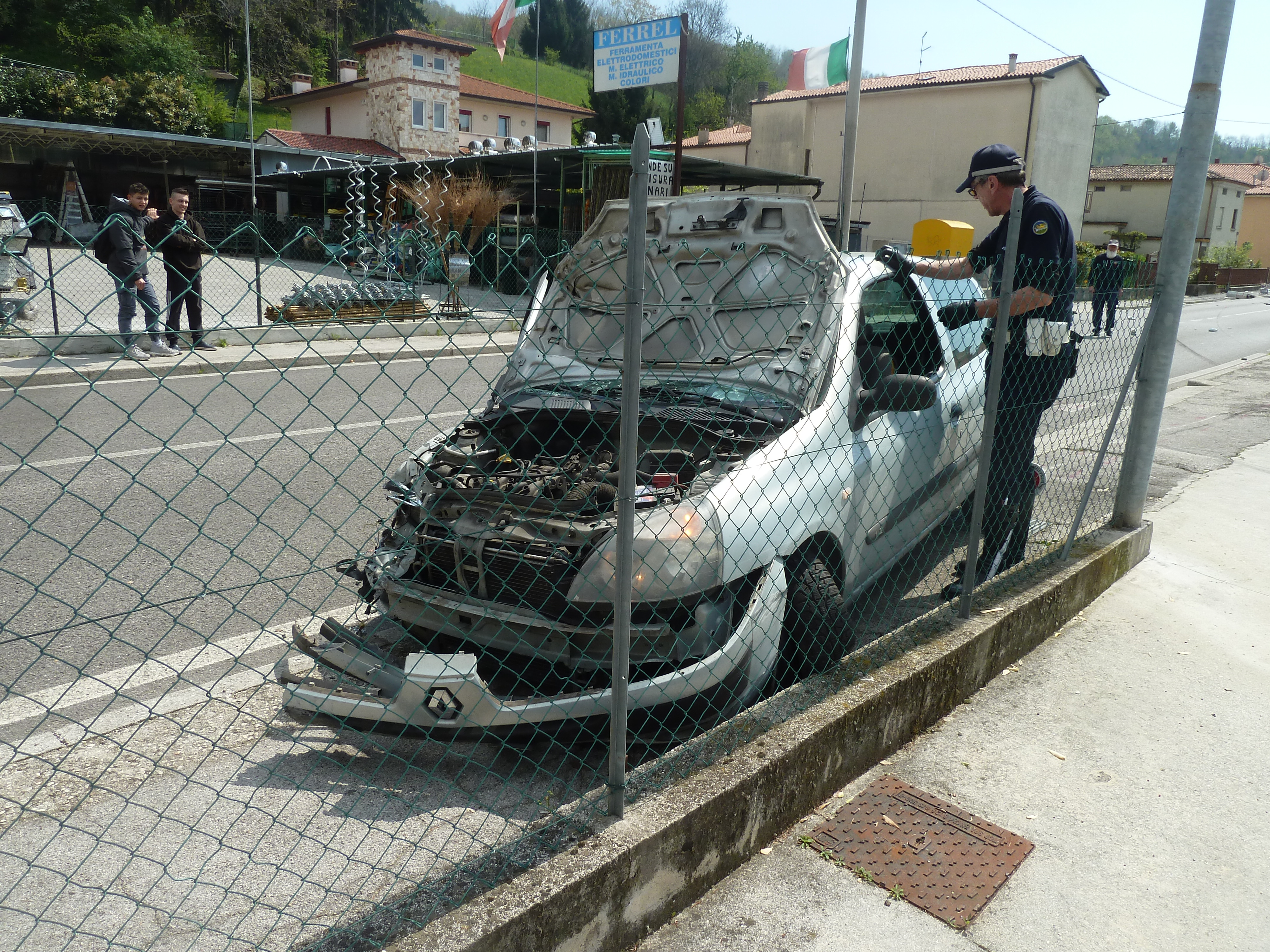 Stamattina intorno alle 12:30 a Chiuppano R.P., donna 32enne di Thiene, alla guida di una Renault Clio, stava percorrendo via Alberi in direzione Chiuppano centro quando ha perso il controllo del mezzo andando a collidere con il muretto di recinzione di una casa, abbattendo e sradicando una centralina della Tim, per poi sbandare ed invadere la corsia opposta, urtare i muretti di recinzione di due case di fronte, dove finiva la corsa.   A seguito dell’urto la donna è stata trasportata dal 118 – in stato confusionale – al pronto soccorso di Santorso con lesioni lievi. La donna verrà sanzionata per eccesso di velocità, perdita di controllo del veicolo e sono in corso accertamenti per verificarne lo stato di idoneità alla guida. La centralina della Tim era appena stata installata con la posa della fibra ottica ed il danno è valutabile intorno alla somma di 15.000 euro solo di materiale TIM.