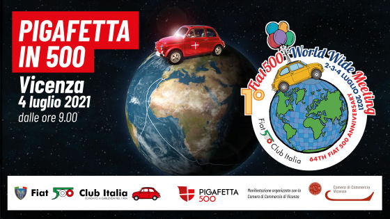 Domenica 4 luglio Vicenza ospiterà il Primo World Wide Meeting delle Fiat 500 organizzato dal Fiat 500 Club Italia, il più grande club italiano delle 500 d’epoca. Si intitola “PIGAFETTA in 500” in onore del vicentino Antonio Pigafetta di cui sono in corso le celebrazioni per i 500 anni dal grande viaggio intorno al mondo.