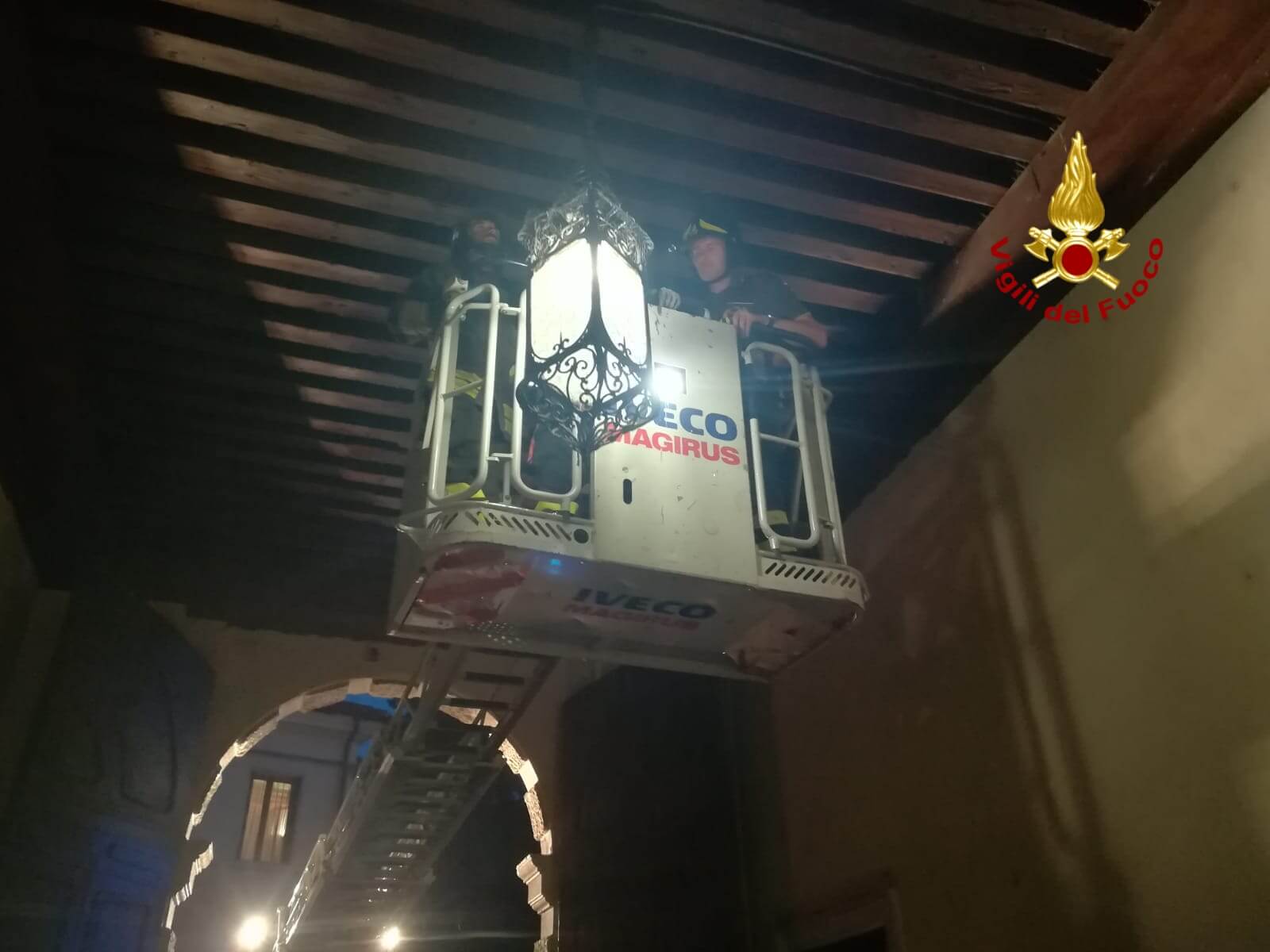 Pompieri liberano piccione incastrato in un lampadario di un antico palazzo (FOTO)