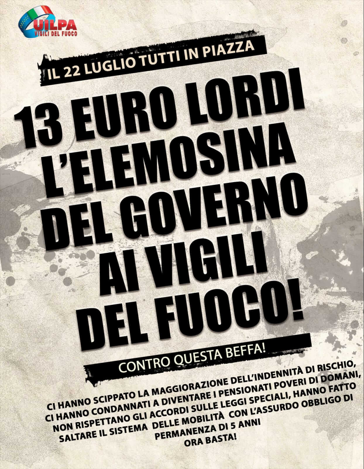 “Vigili del Fuoco poveri oggi ma ancora più poveri domani” questo è l’allarme lanciato dal sindacato “oltre al danno delle poche risorse, ripartite male, vi è la totale assenza di alcun intervento di natura pensionistica e previdenziale, i Vigili del Fuoco a causa degli elevati standard di efficienza psico-fisica e per l’impiego in attività particolarmente usuranti sono costretti ad andare in pensione a 61 anni, l’applicazione dei coefficienti minimi di trasformazione dell’assegno di pensione e il mancato avvio di qualsiasi forma di previdenza complementare, faranno dei Vigili del Fuoco i pensionati poveri di domani”